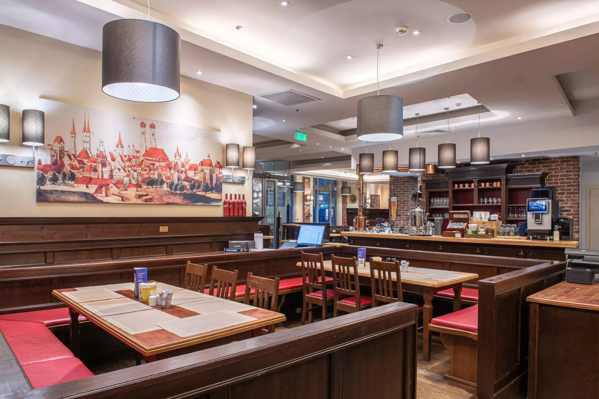 Просторные и светлые помещения бара-ресторана, рассчитанные сразу на 450 посадочных мест, занимают цокольный и первый этаж отеля Cosmos Saint-Petersburg Nevsky Hotel. Спокойный и лаконичный интерьер исполнен в традициях лучших пивных заведений Баварии.